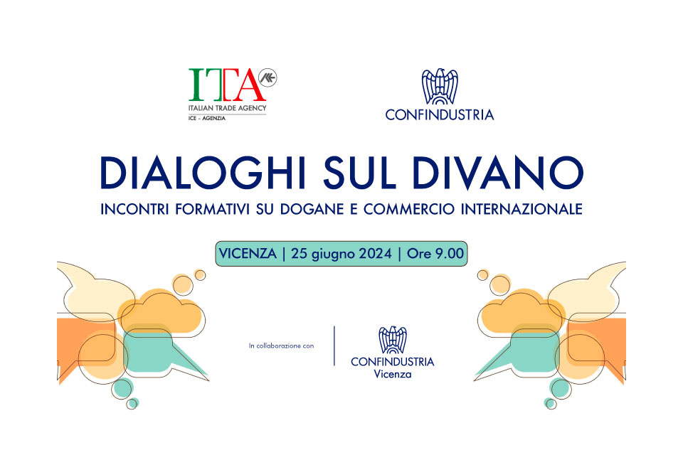 Confindustria Vicenza ospiterà, il 25 giugno, il quarto appuntamento del progetto formativo “Dialoghi sul divano: incontri formativi su dogane e commercio internazionale” organizzato da ICE Agenzia e Confindustria.