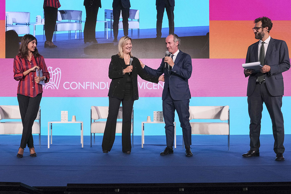 A confrontarsi sul palco dell’assemblea degli Industriali vicentini sono stati l’Amministratore Delegato di Kiko nonché componente del Cda di EssilorLuxottica e Illy Cristina Scocchia e gli imprenditori berici Renzo Rosso, Presidente OTB, patron di Diesel e delegato Confindustria per eccellenza, bellezza e gusto dei marchi italiani, e Giovanni Dal Lago, Co-fondatore, Vice Presidente e CEO Officina Stellare. Presente sul palco anche Silvio Xompero, presidente di Margraf, che ha ospitato l'evento.