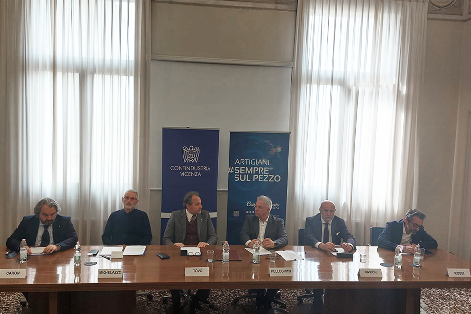 È stato siglato oggi, a Vicenza, l’Accordo di collaborazione in materie di filiere produttive - catene del valore tra Confindustria Vicenza e Confartigianato Imprese Vicenza. Il primo accordo di questo genere in Veneto tra i due sistemi di rappresentanza e di certo uno dei primi protocolli di questo tipo del Paese.
