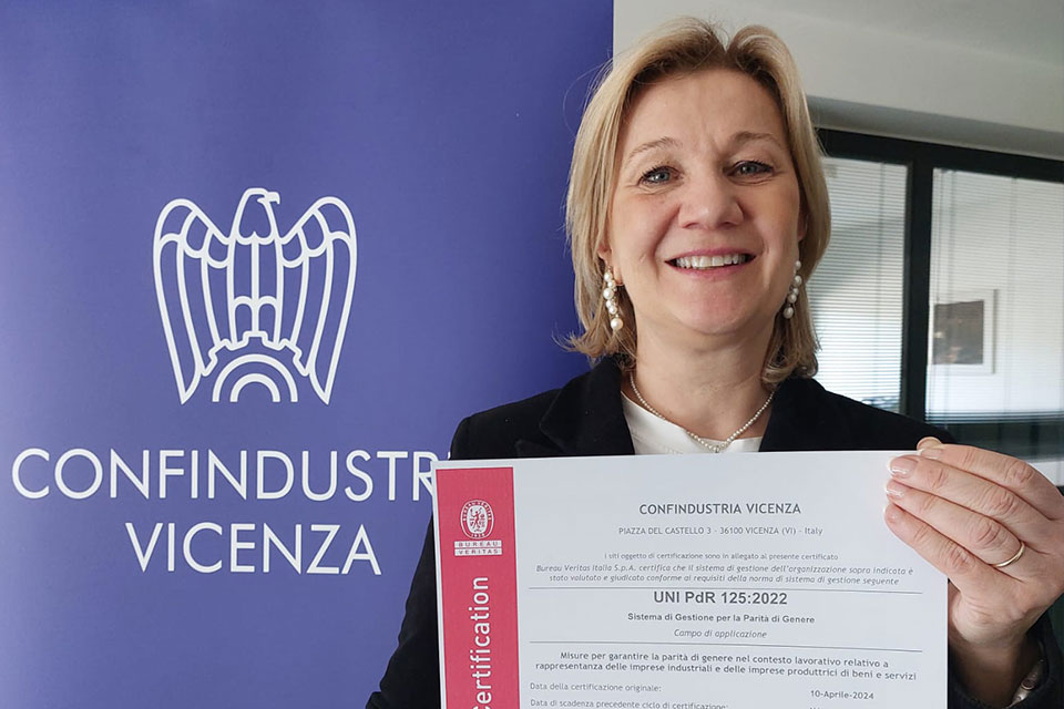 “Questo traguardo sottolinea l'impegno dell'associazione nella promozione della parità di genere nel contesto lavorativo, che si prefigge di garantire un ambiente di lavoro equo e inclusivo per tutti i dipendenti - afferma la Presidente di Confindustria Vicenza Laura Dalla Vecchia -. Credo sia fondamentale che un’associazione come la nostra, oltre a fornire un supporto tecnico e professionale di primo livello, possa fare anche da apripista e rappresentare un tangibile e virtuoso esempio, per fornire un segnale che incoraggi il territorio e le aziende associate a intraprendere attività di valorizzazione in particolare delle lavoratrici e dei loro percorsi di carriera. Sono orgogliosa che con questa Presidenza, l’associazione abbia intrapreso questo importante passo”.