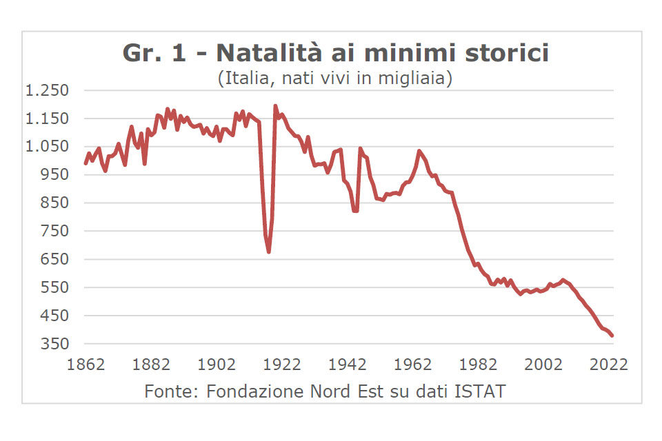La glaciazione demografica in Italia è cominciata. E avrà un moto accelerato come quello dei fenomeni fisici quando superano il punto di non ritorno. Cosicché i numeri diventeranno molto grandi al di là della nostra immaginazione, abituata alle sequenze lineari. In una mini serie di quattro Note, la Fondazione Nord Est mette a nudo questi numeri nella loro cruda realtà e nelle loro conseguenze, dedicando l’ultima uscita alle alternative politiche per il mercato del lavoro.