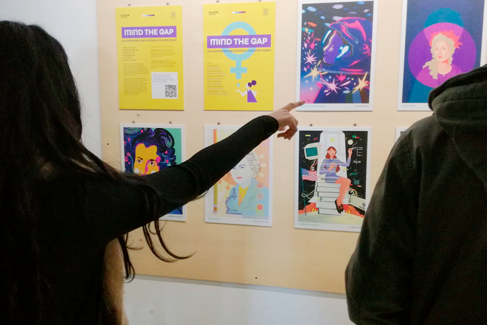 "Mind the Gap" nasce dalla collaborazione tra Confindustria Vicenza e Illustri Festival con lo scopo di abbattere gli stereotipi di genere nelle discipline STEAM (Science, Technology, Engineering, Arts, Mathematics). La mostra raccoglie le opere di dodici illustratrici che hanno reinterpretato la storia di dodici donne che hanno segnato il loro tempo con il proprio contributo nel campo della scienza e della tecnologia.