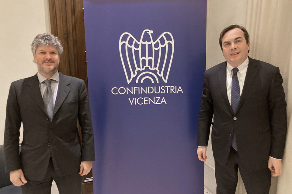Il Vicepresidente Giovanni Dolcetta ha incontrato il Sottosegretario di Stato alla Presidenza del Consiglio dei Ministri Vincenzo Amendola in occasione della sua visita nel Vicentino, che ha visto anche una tappa presso la sede di Gruppo Beltrame, accolto dalla Vicepresidente di Confindustria Barbara Beltrame Giacomello.