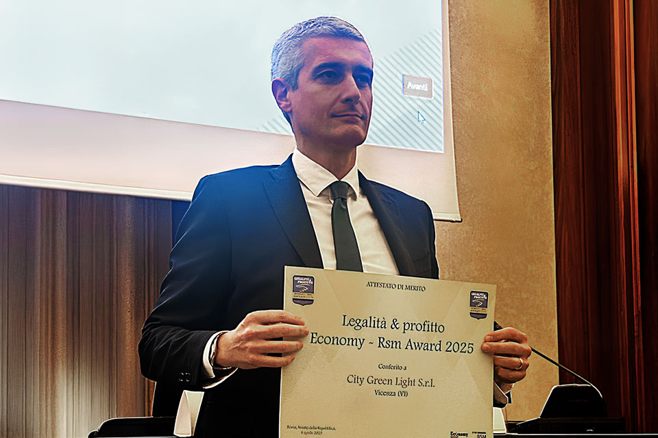 Selezionata per impegno nel promuovere l'integrità, la legalità e la sostenibilità economica nel contesto nazionale, City Green Light in Senato riceve "Legalità e Profitto", un importante riconoscimento conferito alle 100 aziende italiane che si sono distinte per solidità economica, redditività e stabilità patrimoniale, selezionate tra quelle in possesso del rating di legalità dell'AGCM (Autorità Garante della Concorrenza e del Mercato).