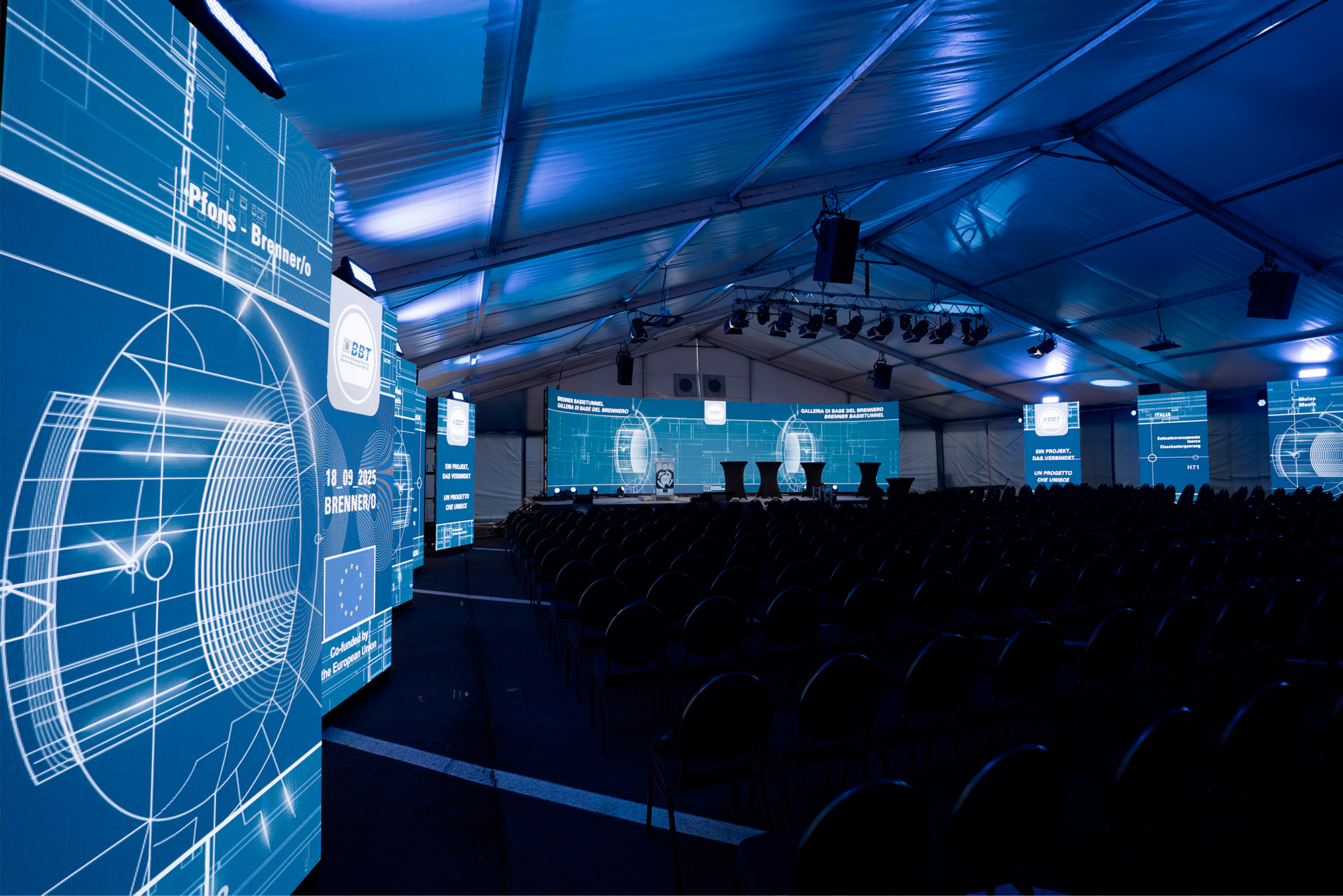 Immagini, luci, contenuti visivi e un set up ledwall immersivo con più di 18mila pixel disposti ad arco hanno coinvolto e abbracciato il pubblico e reso tangibile la dimensione storica e innovativa dell’opera animando l’evento simbolico che, lo scorso 18 settembre, ha segnato una tappa fondamentale per il progetto infrastrutturale di portata europea: con i suoi 65 chilometri, il Brennero diventerà infatti la galleria ferroviaria più lunga al mondo, primo collegamento sotterraneo tra Italia e Austria.