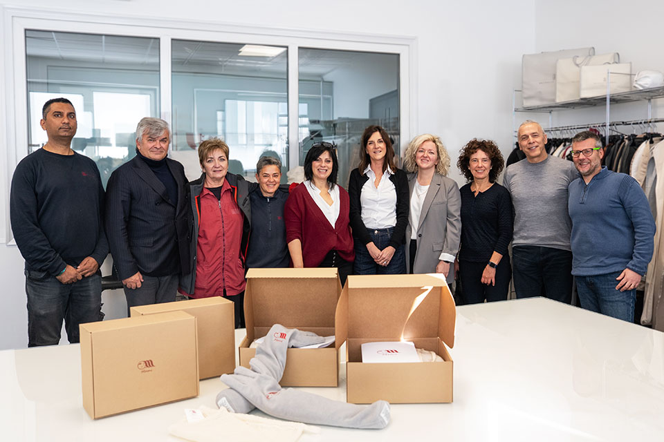 Peruzzo sottolinea inoltre il contributo delle diverse realtà del gruppo: Reca Mainetti per le etichette in cotone, Mainetti Business Unit Paper Packaging per le scatole in cartone e Mainetti Omaf per le buste in plastica.