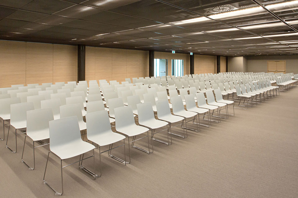 Le sale polifuzionali sono state allestite con sedute Aira GreenUp dell’azienda vicentina Aresline. Aira GreenUp è una seduta ecosostenibile, prodotta al 70% con plastica di riciclo proveniente da raccolta differenziata non industriale, testata in resistenza, durata e ignifugicità. È stata scelta dalla committenza in continuità con il progetto di riqualificazione ecosostenibile.