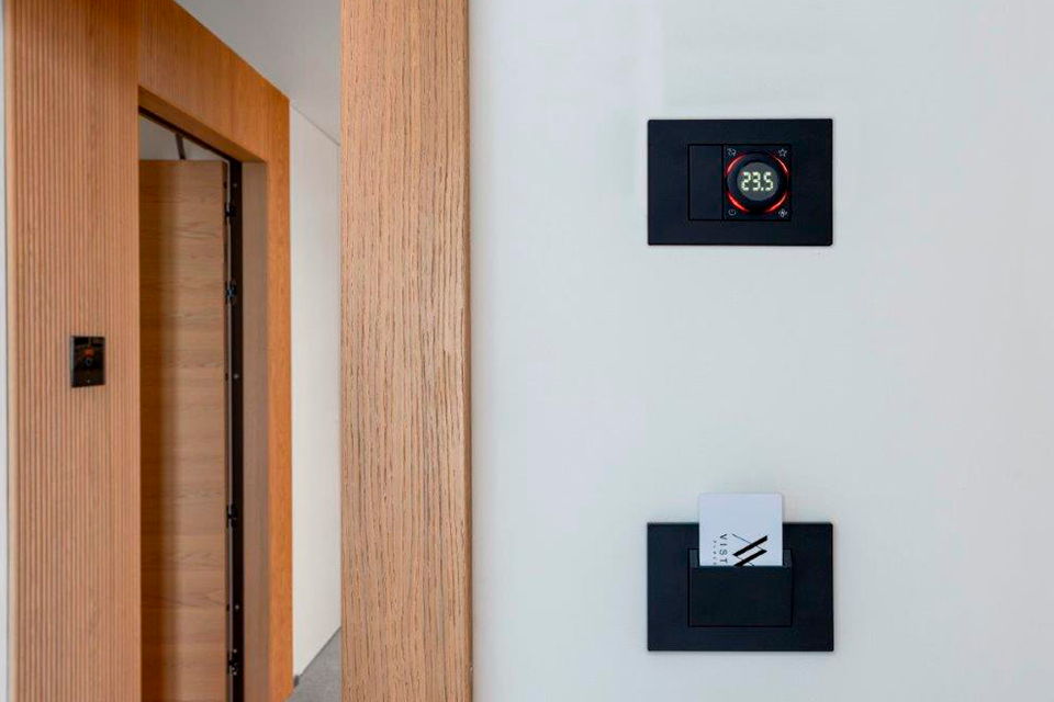 Ed è proprio la tecnologia Vimar a fare la differenza, nello specifico quella del sistema di gestione alberghiera Well-contact Plus, sviluppato su standard KNX, in grado di rendere possibile un’ospitalità smart, per offrire un soggiorno all’insegna del benessere. Ogni struttura ricettiva ha una sua ben precisa identità, che deve essere rispettata anche nei dispositivi elettrici ed elettronici; al View Place Hotel, Well-Contact Plus si coordina esteticamente con le serie civili Linea ed Eikon con comandi Tactil, per vestire l’energia nel segno del design.